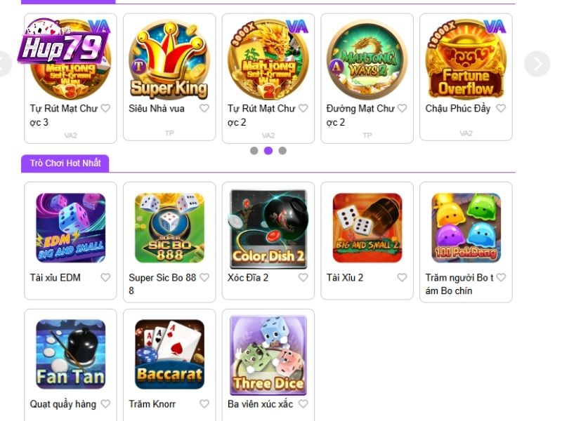 Game bài Hup79 cung cấp nhiều tựa game quen thuộc, phổ biến và được yêu thích. Trong đó các trò chơi nổi bật có thể kể đến như: