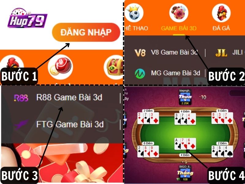 Hướng dẫn các bước truy cập Game Bài Hup79