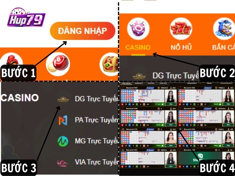 Các bước truy cập Live Casino Hup79